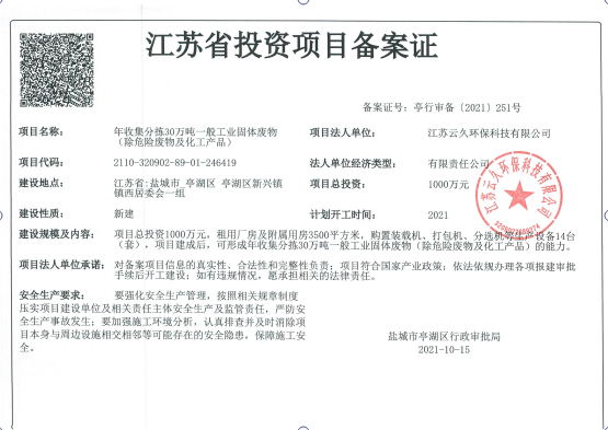 公司名稱(chēng):江蘇云久環(huán)保科技有限公司 經(jīng)營(yíng)方式: